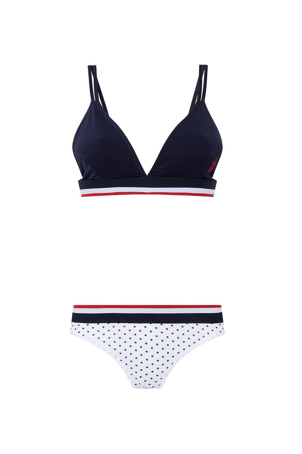 U.S. Polo Assn. 66253, Cotton & Lycra, Polka Dot Patterned, Bustier & Shorts Set, Navy Blue