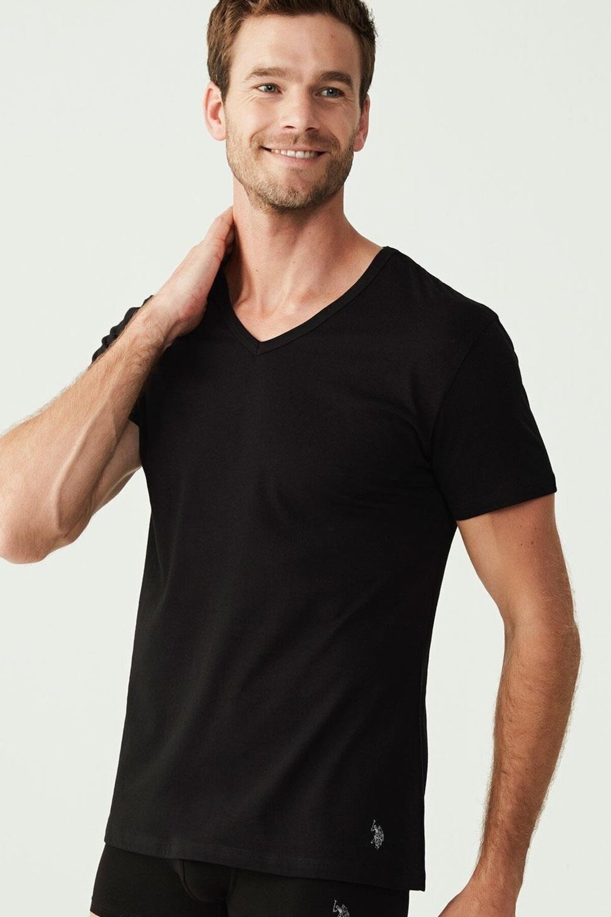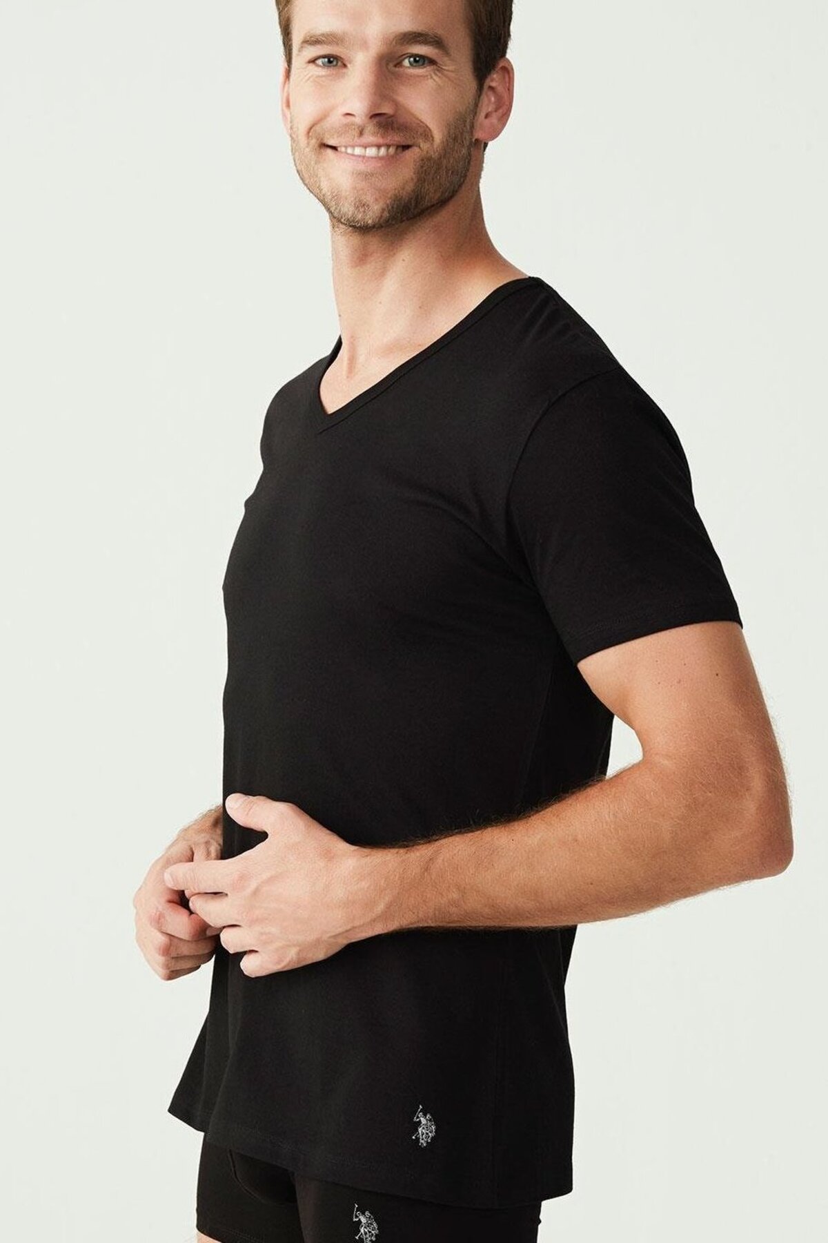 U.S. Polo Assn. 90001, 2 Pack, 100% Cotton, V-neck, Men’s Undershirt & T-shirt Set Black