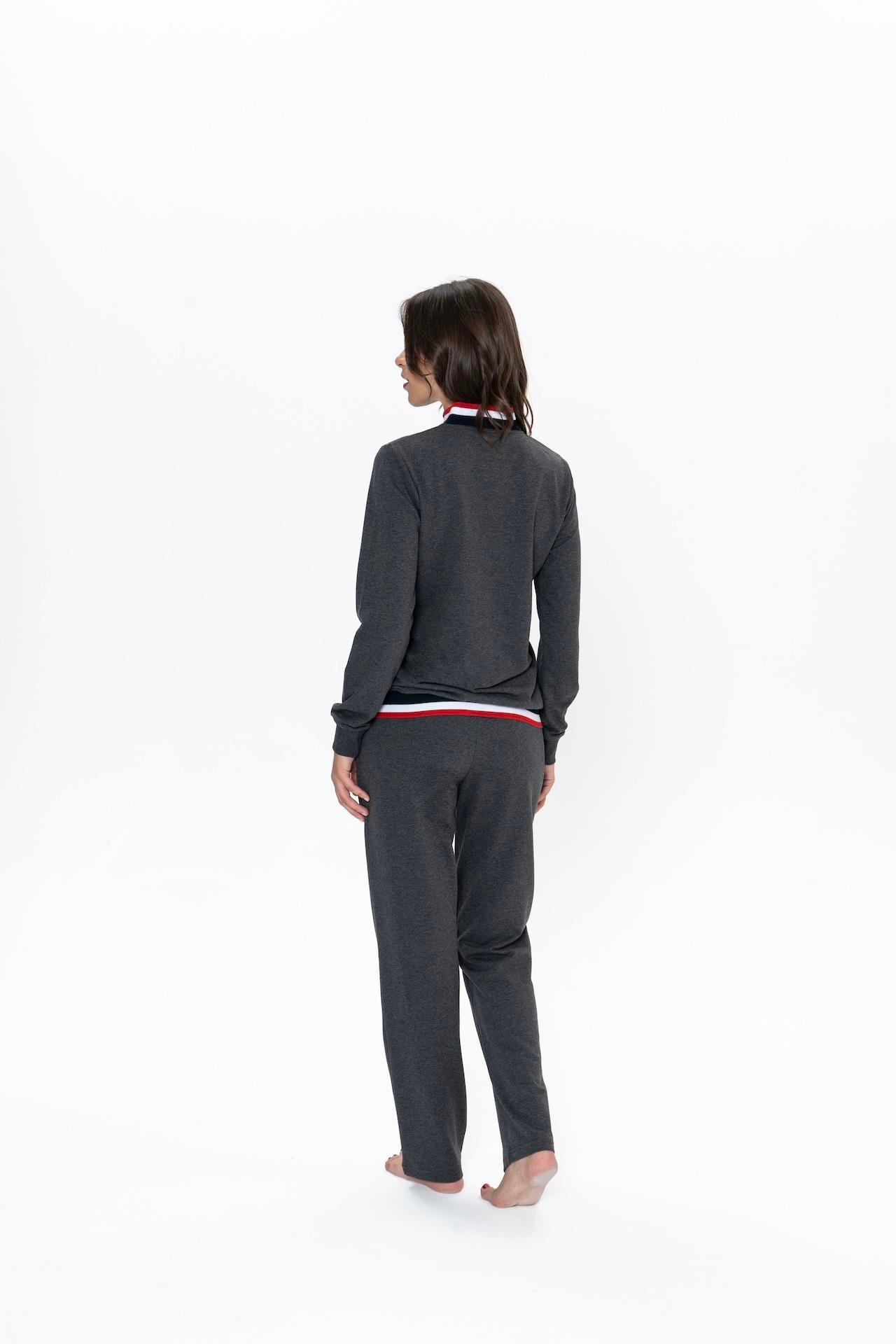 U.S. Polo Assn. Women’s Pajama Set, 20112, Buttoned Collar, Pocketed, Anthracite