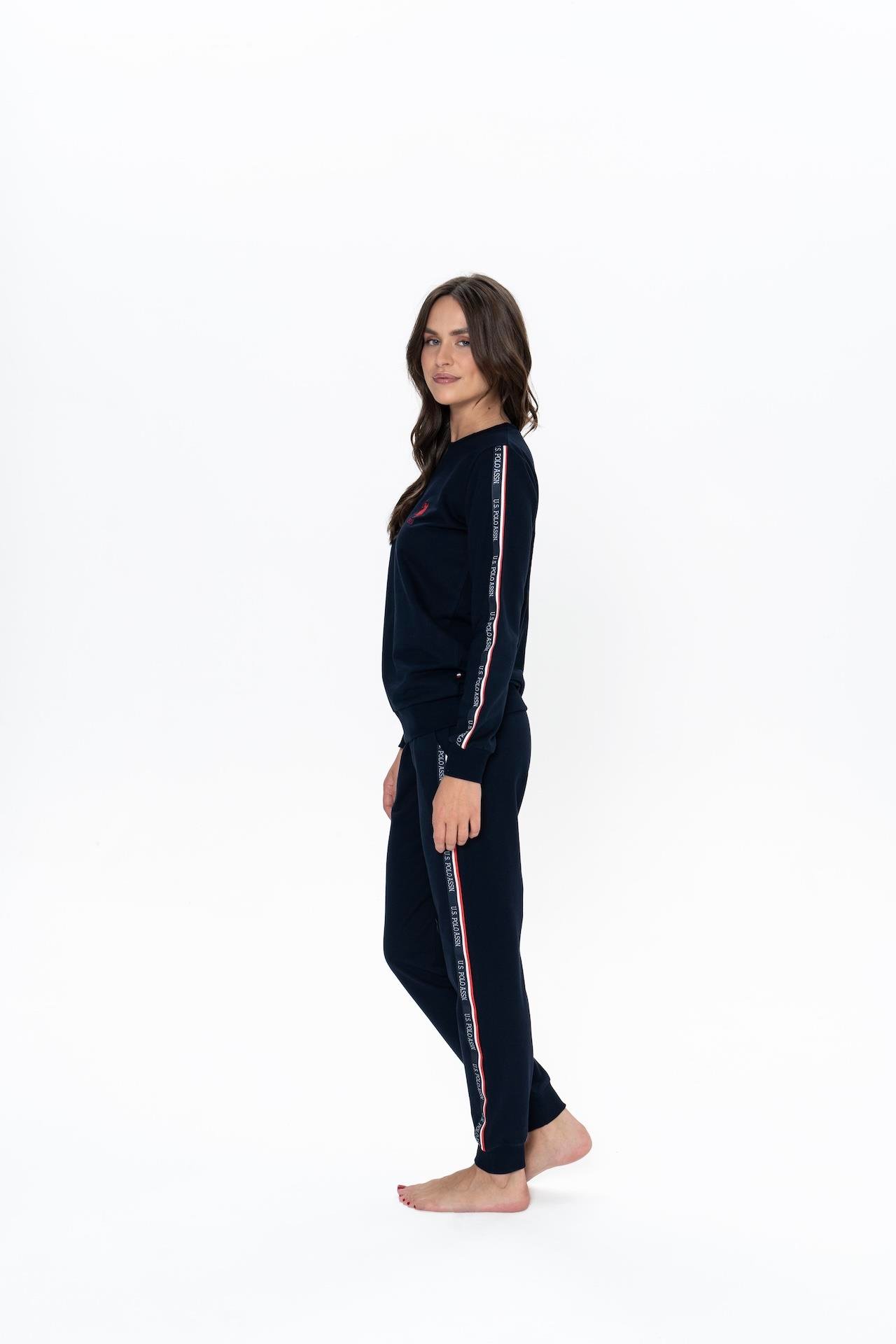 U.S. Polo Assn. Women's Pajama Set, 20113, Elasticated Sleeve & Leg, Round Collar, Pocketed, Navy Blue